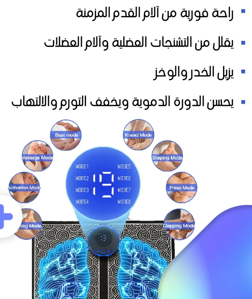 امنح نفسك الشعور بالراحة و الإسترخاء فأنت بكل تأكيد تستحق ذلك جهاز تدليك القدمين الذكي الجديد بتقنية EMS التي تدلك عضلات القدم مما يخفف الألم بشكل ملحوظ ويقلل من التعب ويساعدك على الإسترخاء و تحفيز الدورة الدموية